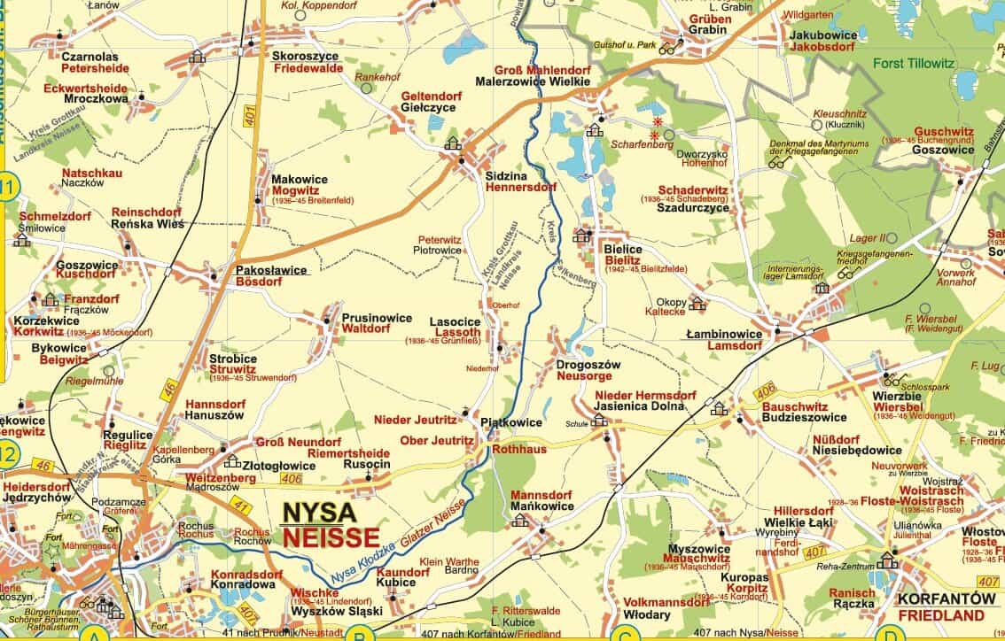 Abbaue Kreuzthal, Adamowitz, Adolphstal, Agathenhof, Agneshof, Ahndorf, Albertinenhof, Albertstal, Albrechtsdorf, Albrechtshof, Albrechtsthal, Alinenhof, Alsen, Alt Baudendorf, Alt Blachow, Alt Budkowitz, Alt Friedrichsberg, Alt Friedrichshof, Alt Grambschütz, Alt Grottkau, Alt Hammer, Alt Karmunkau, Alt Kielbaschin, Alt Köln, Alt Kudoba, Alt Kutzoben, Alt Ostdorf, Alt Poppelau, Alt Rosenberg, Alt Schalkendorf, Alt Schalkowitz, Alt Siedel, Alt Tschapel, Alt Werder, Alt Zulkau, Altbergel, Altdorf, Alte Arende, Altehütte, Alteichen, Alteneichen, Althammer, Althaus, Althaushammer, Althütten, Altmühle, Altottag, Altschloß, Altvorwerk, Alzenau, Amalienhof, Amerika, Ammern, Andreashütte, Andreasthal, Andreaswille, Angerbach, Angerfeld, Angersdorf, Anglersruh, Aniolka, Annahof, Annamühle, Annenhof, Ansiedlerhäuser, Antonia, Antonienhof, Arnsdorf, Auendorf, Auenfelde, Auenrode, Augustenhof, Augustenvorwerk, Babinitz, Bachheiden, Bachwitz, Bagno, Bahnsiedel, Banatken, Baniok, Banja, Bankau, Bankwitz, Barkhausen, Barnia, Baruthe, Barwinekmühle, Bärzdorf, Basan, Bauhof, Baumgarten, Bauschwitz, Beatenhof, Beatenhoff, Beckern, Beigwitz, Belmsdorf, Bendawit, Benjaminsthal, Bensky-Häuser, Bergdorf, Bergel, Berghäuser, Berghof, Berghütte, Bergvorwerk, BERNSTADT, Berthelschütz, Biadacz, Biadasch, Biadatz, Bialamühle, Bialon, Bialy Lug, Bibiella, Bielitz, Bienendorf, Bienenstöcke, Bierdzan, Biestrzinnik, Birkdorf, Birkenau, Birkenfeld, Birkenhof, Birkenhorst, Birkental, Birkhof, Birklache, Birkowitz, Birksdorf, Bischdorf, Bischwitz, Blachow, Blachstädt, Blaschowitz, Blawacziske, Bleiche, Blonie, Blumenthal, Blütenau, Bockhäuser, Bockmühle, Bodland, Bodländer Glashütte, Bogdalla, Bogenau, Bogenfeld, Boguschütz, Böhlitz, Böhme, Böhmischdorf, Böhmwitz, Bokowe, Bolko, Bonken, Bonkownia, Borek, Boritsch, Borken, Borkenhain, Borkenwalde, Borkowitz, Borkwitz, Boronow, Boroschau, Borowian, Borrek, Boruschowitz, Bösdorf, Botzanowitz, Bowallno, Brande, Brandetal, Brandewalde, Brandingen, Braschhof, Brassowe, Brechenmühle, Bregulla, Breile, Breitedorf, Breitenfeld, Breitenmarkt, Breitenstück, Breschine, Bresinke, Brettmühle, BRIEG, Briesen, Brigittenhof, Brinitz, Brinitze, Brinitzka, Brinnitz, Brody, Bronietz, Brück, Brücken, Brückenfeld, Brückenort, Brune, Brünne, Bruschiek, Brylka-Mühle, Brynnek, Bryschowe, Brzegi, Brzesnitz, Brzezina, Brzezinke, Brzezinken, Brzezinkowe, Buchelsdorf, Buchendorf, Buchengrund, Buchental, Buchitz, Buchwald, Buddenbrock, Bukowegrund, Bukowietz, Bulinski, Burgfels, Burghof, Bürgsdorf, Burgstätte, Burkardsdorf, Buschgrund, Buschhausen, Buschweiler, Busow, Butzki, Bzinitz, Bziunkau, Carlshof, Carlsruhe, Carmerau, Celline, Centawa, Chalupken, Charlottenau, Charlottenberg, Charlottenfeld, Charlottenhof, Charlottenrode, Charlottenthal, Charlottenthal, Chmiellowitz, Chobie, Chorulla, Christianshof, Christianthal, Christinenhof, Chronstau, Chrosczinna, Chrosczütz, Chrzowitz, Chrzumczütz, Chudoba, Chwostek, Collonnowska, Comprachtschütz, Conschütz, Crompusch, Cronendorf, Czarnowanz, Cziasnau, Czieletz, Czieschowa, Czolka, Dachsberg, Daleki, Dallenau, Dalnie, Dambine, Dambinietz, Dambrau, Dambrowkamühle, Dammer, Dammer-Oschek, Dammfelde, Dammfelder Hammer, Dammforst, Dammratsch, Dammratschhammer, Dammrode, Dammwehr, Dammweide, Dammwiese, Damnig, Damnik, Danietz, Daupe, Daupe, Dechantsdorf, Dembio, Dembiohammer, Dembowagura, Derschau, Deutsch Jamke, Deutsch Leippe, Deutsch Marchwitz, Deutsch Steine, Deutsch Würbitz, Dianenberg, Dieterwald, Dionisen, Döbern, Dobiaz, Dochhammer, Dohlenhorst, Dombrowa, Dombrowitz, Dombrowitze, Dombrowka, Dombrowken, Dombrowo, Dometzko, Dometzkohammer, Donnersmark, Dörfel, Dorishof, Dörnberg, Dornfeld, Dorotheenhof, Drahthammer, Dralin, Drapatz, Dreitannen, Drindowe, Droganie, Drogobitsch, Drzymallamühle, Dubiellen, Dupine, Dworczance, Dylocken, Dyrden, Dziedzitz, Dziekanstwo, Dzielna, Dziewczagora, Dziotek, Dziuba, Ebenau, Ebersheide, Eckersdorf, Eckwertsheide, Egelbach, Ehrenfeld, Eichau, Eichberge, Eichborn, Eiche, Eichelhof, Eichen, Eichenau, Eichendorf, Eichenhorst, Eichenkamp, Eichenleite, Eichenried, Eichenrieder Werder, Eichenvorwerk, Eichenweg, Eichfeld, Eichforst, Eichgrund, Eichhammer, Eichhof, Eichhorn, Eichhorst, Eichtal, Eichwald, Eichwege, Eilau, Einöde, Einsiedel, Eisdorf, Eisenau, Eisenhammer, Eleonorenhof, Eleonorensgrün, Ellguth, Ellguth Proskau, Ellguth Turawa, Ellguth-Friedland, Ellguth-Guttentag, Ellguth-Hammer, Ellguth-Tillowitz, Ellguth-Woischnik, Elsenruh, Emilienhain, Emilienhof, Emilienhütte, Emmahof, Endersdorf, Engelheim, Entenfang, Epheuwald, Erbenfeld, Erbenhof, Erdmannsdorf, Erdmannshain, Erlengrund, Erlengrund, Erlenhof, Erlenhof, Erlenhorst, Erlenmühle, Erlental, Erling, Ernsthof, Erzgruben, Erzweiler, Eschenwalde, Ewaldshütte, Fabianswalde, Falkenau, FALKENBERG, Falkendorf, Falknersdorf, Falkowitz, Fallmirowitz, Fasanerie, Feldhof, Feldwasser, Ferdinandshof, Fichte, Fichten, Fichtenau, Finkenberg, Finkenstein, Fischbach, Flacken Weiler, Flaken, Fliegerhorst, Flosshaus, Floste, Floste-Woistrasch, Flügeldorf, Föhrendorf, Föhrental, Follwark, Forellengrund, Forstfelde, Forstheim, Frantzenshof, Franzdorf, Frauendorf, Frauenfeld, Frauenhain, Frei Kadlub, Frei Pipa, Frei Proskau, Frei Tschapel, Freidorf, Freienfelde, Freifelde, Freihäuser, Freiheit, Freihof, Freihöfen, Freischlag, Freivorwerk, Freude, Freudendorf, Freudengrund, Freudental, Friedashöhe, Friedenau, Friedenshof, Friedewalde, FRIEDLAND, Friedrichsberg, Friedrichsfeld, Friedrichsfelde, Friedrichsglück, Friedrichsgrätz, Friedrichsgrund, Friedrichshammer, Friedrichshilf, Friedrichshof, Friedrichsthal, Friedrichswille, Frischfeuer, Frischmühle, Fröbeln, Frohnau, Frühauf, Fuchssteig, Führheim, Fünfteichen, Fürsten Ellguth, Gaborowiec, Gaidowa, Gajden, Gajdowe, Galbitz, Gall, Garbendorf, Garsuche, Gartenberg, Gaschinka, Gastlieb, Gawlikmühle, Geisenwald, Geißwiese, Geltendorf, GEORGENBERG, Georgenwerk, Geppersd